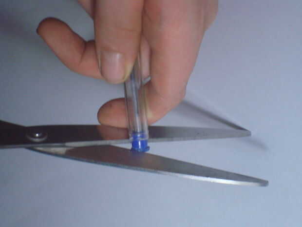 Retire el extremo de la pluma con unas tijeras como en la imagen.