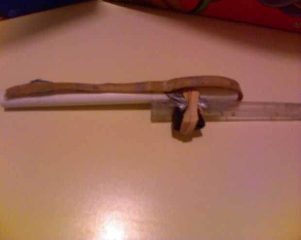 ahora poner la clavija con el clavo dentro de la holes.next envuélvalo con la banda de goma fina 4 veces.