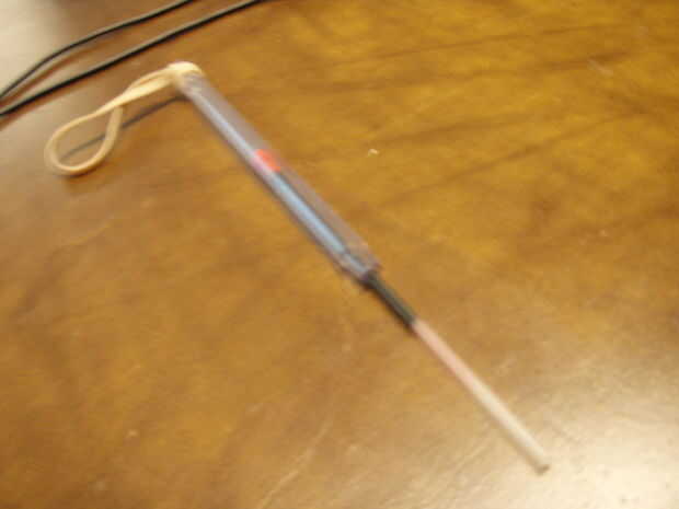 Cargar la parte interior de la pluma en el cañón, de modo que se pega hacia fuera el extremo sin la goma.