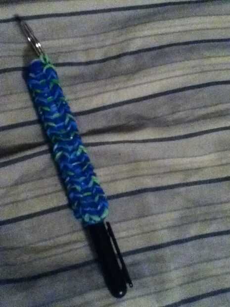 este instructable (mi primer uno) te enseña a hacer un agarre de lápiz o pluma o cubierta. Es un proyecto muy fácil. Si usted sabe cómo hacer una pulsera de cola de pescado de telar de arco iris no se tiene ningún problema con esto. Es lo mismo que la cola de pescado, pero va en una plaza.