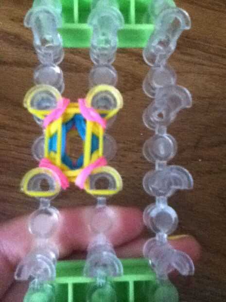 Paso 1: materiales Gancho clip C bandas de goma de telar del telar del arco irisPaso 2: colocar Hacer las clavijas en un gran rectángulo también Asegúrese de que la flecha es hacia usted que colocar una banda de goma del centro a la izquierda y luego