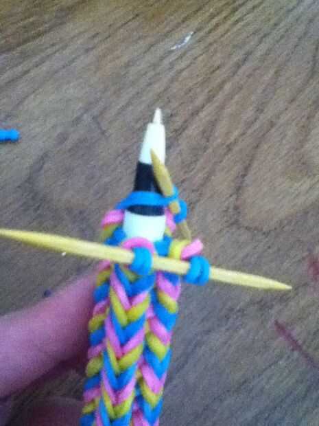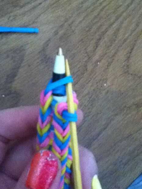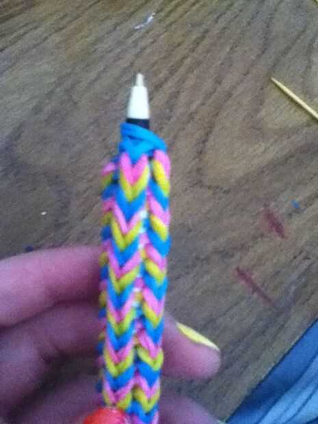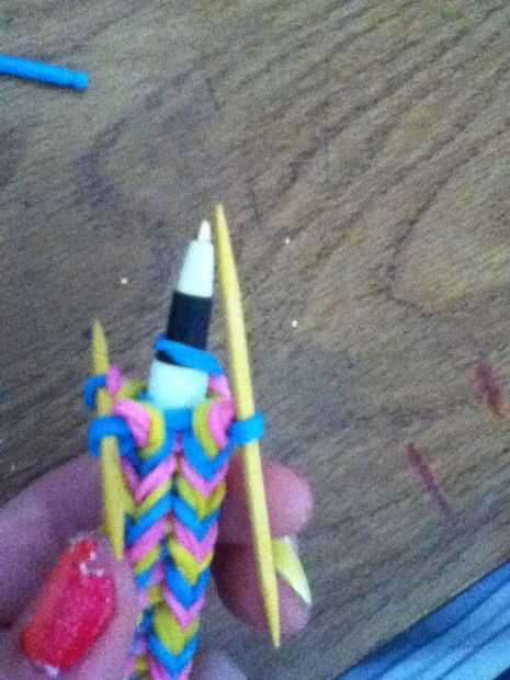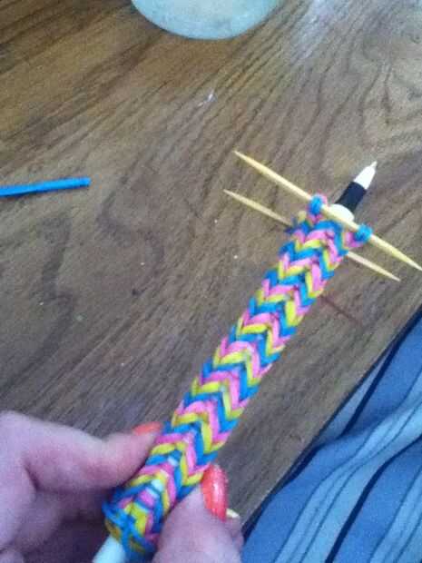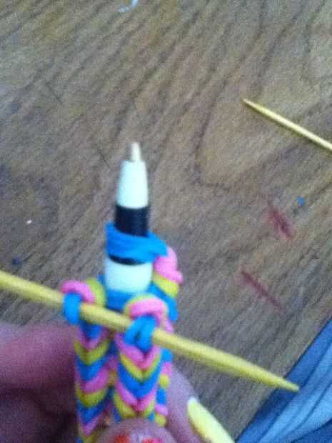 A continuación, utilice sus palillos en los extremos del lazo en el extremo de la pluma o el lápiz.