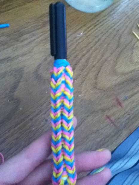 Supongo que se puede utilizar cualquier lazo en la parte inferior para esto, pero usé mi gancho para introducir una banda extra en caso de que el peso hizo que romper. Dudo que lo haría, pero como he dicho, me gusta lo jugar a seguro, y sería más bien pierdo una banda que terminan ripear todo el proyecto.