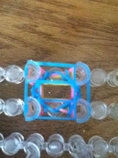 Paso 1: materiales Gancho clip C bandas de goma de telar del telar del arco irisPaso 2: colocar Hacer las clavijas en un gran rectángulo también Asegúrese de que la flecha es hacia usted que colocar una banda de goma del centro a la izquierda y luego