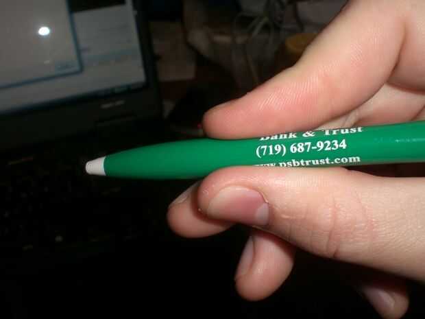 Índice de gota: Una vez todo querrá apretar la pluma un poco entre sus dedos pulgar e índice. Luego deslice el dedo índice de la gota de la pluma, este movimiento empujará la pluma detrás alrededor de su dedo pulgar listo para ser hecho girar hacia atrás otra vez.