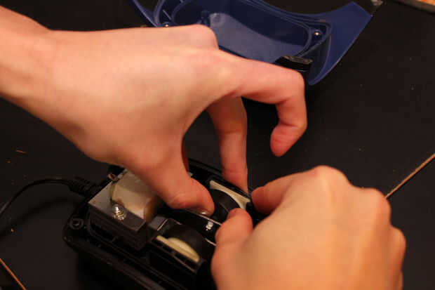 Alternativamente, usted podría el diafragma vuelva a colocar la válvula blanca antes de ponerlos nuevamente en su lugar y deslice que los dos de nuevo en las mangas al mismo tiempo.