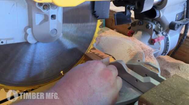 Usando mis ingletes Sierra que corté dos piezas que fueron 1 3/4" de largo, estos actuarán como la cerca que el blanco de la pluma contra al perforar hacia fuera.