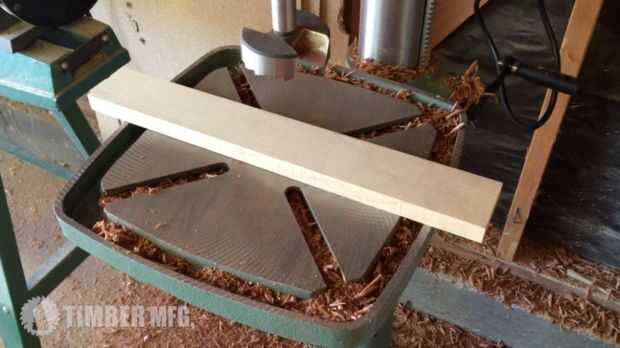 Para la base de la plantilla he utilizado un trozo de arce que fue alrededor de 16" de largo, 2 1/4" ancho y 3/4" densamente. Este tamaño no es super importante, pero una cosa que usted quiera para asegurarse de que, es la pieza que se utiliza para la base es suficiente para cubrir el ancho de la mesa del taladro. De esa manera podrás sujetar la plantilla agradable y apretada para el taladro.