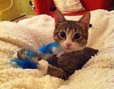 Además si quieres un juguete de pluma más saludable para su gato, esto es la manera de hacerlo.