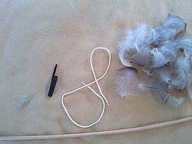 Las plumas fueron donadas por los gansos del locales (de manera pacífica, creo que ellos mismos se acicalarse). El azul plumas en este instructable fueron desde el almacén del dólar. Obviamente los azules no como con el medio ambiente o pájaro amable y el color azul no es tan bueno para el gatito como plumas naturales (pero no peor de juguetes comprados en tiendas).