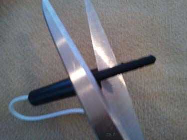 2. con las tijeras (o cualquier dispositivo adecuado de pokey), recorte la ficha (si existe) la tapa de la pluma, entonces Hágale un agujero en la parte superior de la tapa de la pluma que es suficientemente grande para la cuerda ir a través, pero no tan grande como para que el nudo.