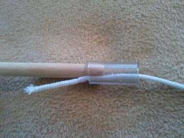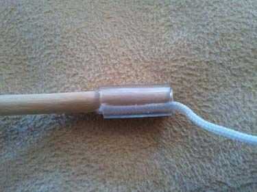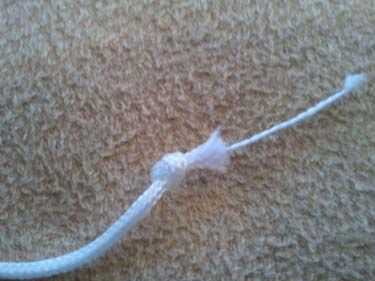 En mi caso, la cadena se llevó a cabo tan apretada por la tubería que no necesita nada más allí. Si está suelto, puedes añadir un nudo para que el extremo de la cuerda, o añada una gota de pegamento caliente.