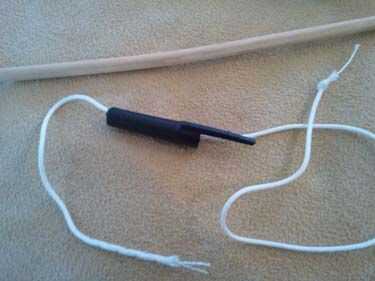 3. Pase la cuerda por el agujero de la tapa, para que el nudo se termina en el interior de la tapa. Para mí impulsó a la cadena y luego lo saca del agujero. Puede que necesite usar una aguja o pincho para ayudar a él a través.
