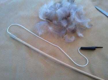 4. antes de establece el pegamento caliente, empuje el manojo de plumas en él. Terminales entran en la tapa, en el pegamento. Algunos caliente pegamento voluntad de exuda probablemente el final de la tapa de la pluma - Mantenga los dedos claro!