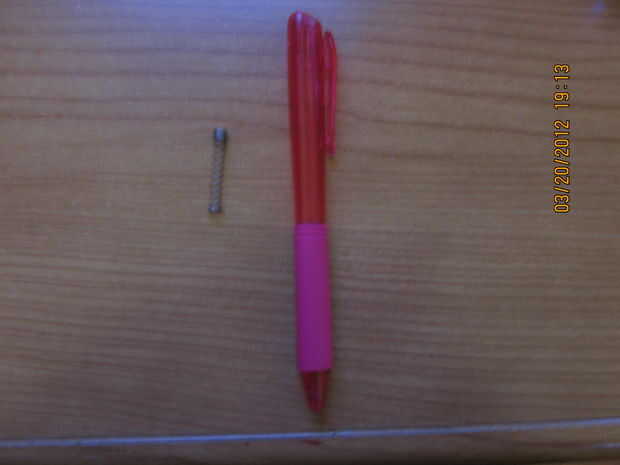 Por lo tanto, viendo que has venido esto lejos te voy a mostrar cómo hacerlo.  Tome el resorte desde el lápiz al azar y caer en el "Pentel Wow! bk440 "caso de la pluma.