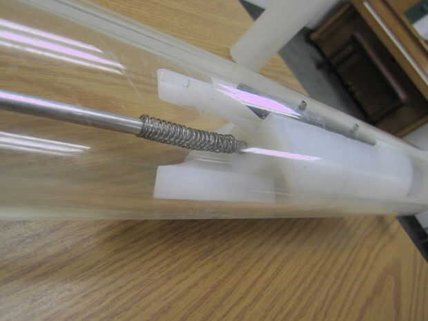 Como proyectos de ingeniería más, cuando empezamos a construir nuestro modelo físico nos encontramos con retos que no predijo el modelo CAD. Uno de los mayores desafíos que encontramos fue la fricción entre las dos cámaras. Esperábamos esta fricción y para evitar de atar el mecanismo, inclinado las superficies de deslizamiento de la leva a 45° en el modelo de CAD (Fig. 4).