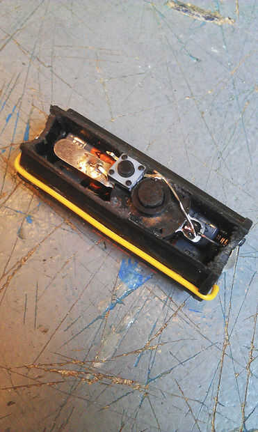 Después de ponerse en contacto con los interruptores, hemos soldado un resorte hasta el final de ellos, para hacer contacto con la caja. Doblamos un poco hasta la primavera para que el contacto está asegurado.