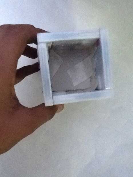 ¿1. Recuerde que la hoja que le corte en el paso antes? Momento de usarlo! Recortar un poco los bordes para que se ajuste exactamente dentro de su stand. (Puede tener utilizar mediciones aquí!)