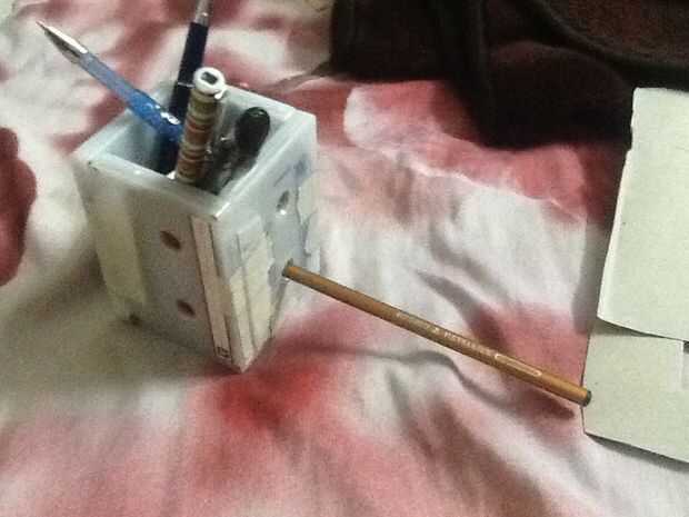 Sólo hay que poner la hoja en la posición correcta, y usted haya completado su stand de pluma/lápiz de cassette con o sin un sacapuntas.
