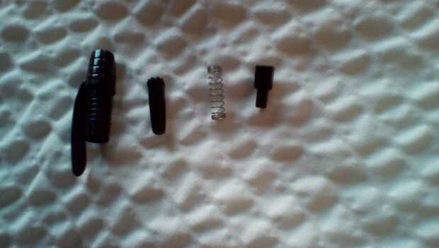 La pieza posterior de la pareja de papel y las piezas del resorte y clicker del piloto.