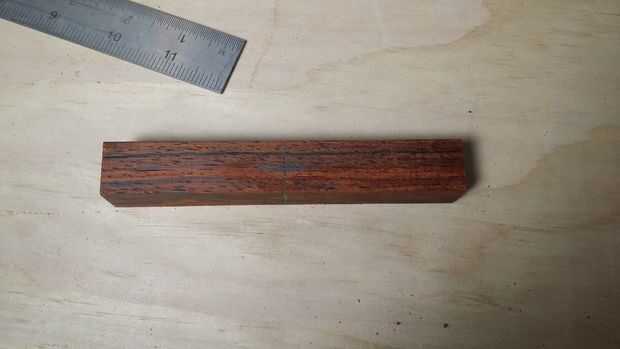Aquí estoy midiendo hacia fuera el espacio en blanco para ser cortado por la mitad. Una línea es la marca a mitad de camino mientras que el otro es para fines de alineación.