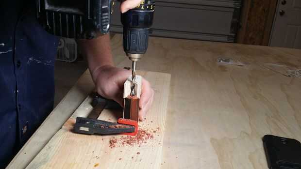 Aquí estoy utilizando una plantilla para hacer un agujero más recto para el cilindro de la pluma.