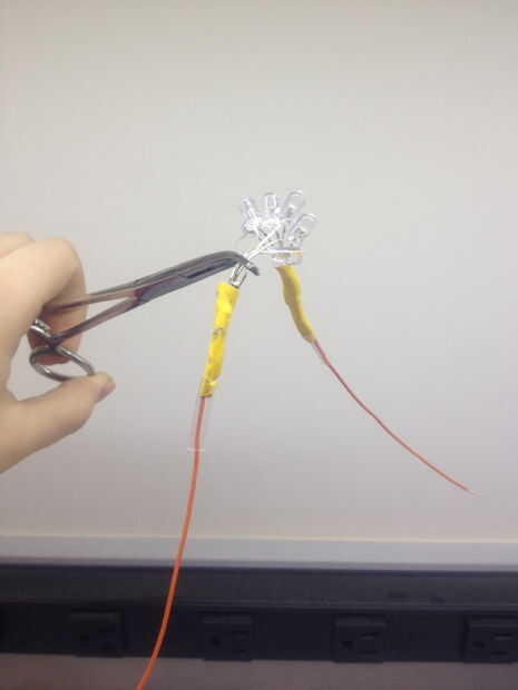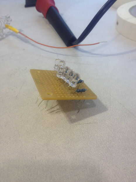 Entonces utiliza sólo regular LED... Comencé con uno, pero yo quería que ser lo suficientemente brillante para brillar a través de una bolsa de plástico. He probado primero en un circuito, pero los LEDs no conecta a uno de los pasadores que esencialmente el LED a pulso... Tuve que ir por el camino listo para hacerlos todos trabajan juntos.