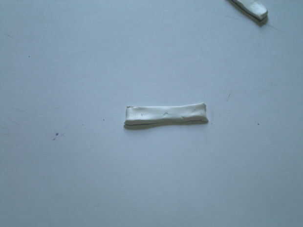 Empieza con la pieza de tamaño medio de barro y condicionan, luego ejecutarlo a través de mayor ajuste en la máquina de pasta, el mío es 9. necesita espacio suficiente para cortar dos pulgadas por una mitad pulgada rectangle.the rectángulo servirá como base para este proyecto. Si ae laminado a mano con rodillo de 1/4 de pulgada de espesor,