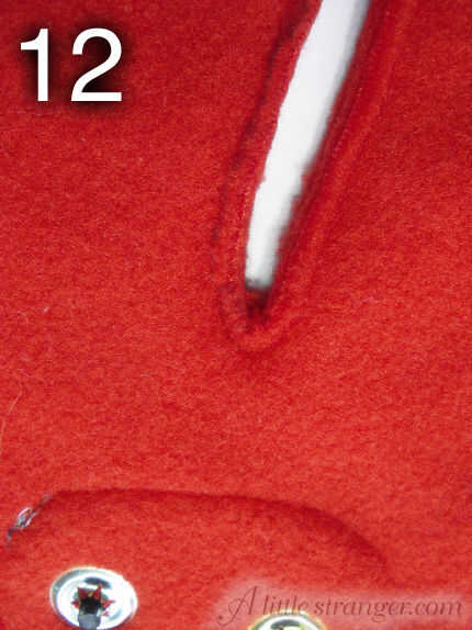 1 2) recortar entre las orejas dejando un margen de 2 mm derecha que la parte inferior, esto le dará una costura limpia una vez le derecho de salida.