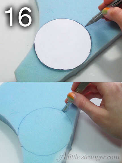 17) Presione el inserto de espuma de, con los dedos para empujar los bordes hasta las costuras en el cuerpo.