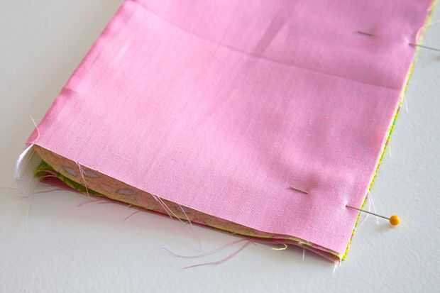 Coser este borde con un margen de costura de 1/4 de pulgada, pespuntes en ambos extremos.