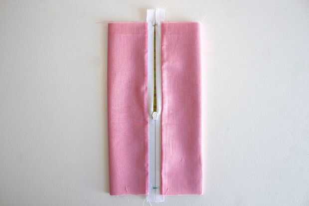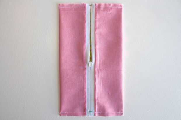 Aplanar la bolsa para que la cremallera está sentado directamente sobre la costura de la parte inferior.