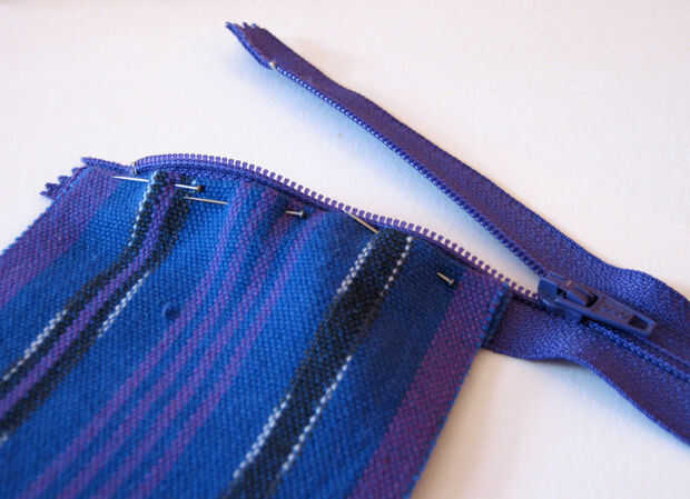 Coser una cremallera a los extremos de dos de las piezas. La orientación de las cremalleras se afecta si las cremalleras abiertas en la misma dirección o en direcciones diferentes en los dos extremos. Prender con alfileres antes de coser si lo desea. Uso de un pie para cremalleras (mitad de un pie completo) hace coser las cremalleras mucho más fáciles.