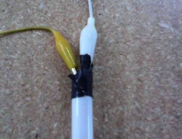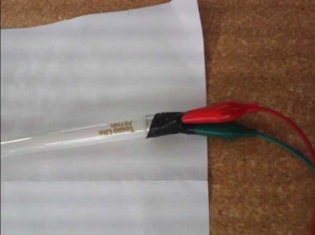 Conecta los cables blancos del balastro a las terminales de un lado de la lámpara, con ayuda de los cables caimán-caimán. De forma similar, conecta los cables negros del balastro a las terminales del otro lado de la lámpara. La lámpara tiene dos terminales de cada lado, debe haber un caimán en cada terminal.