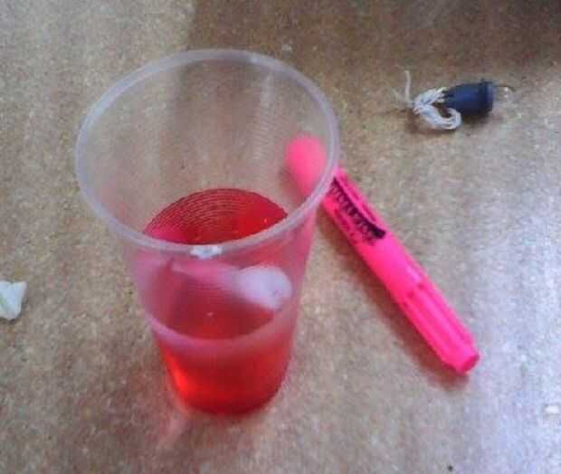 Después de se ha retirado el cartucho de lana del plumón, hay limpiarlo para remover la tinta original. Para esto, llena el vaso es hasta la mitad y ambientarnos el cartucho de lana una hora de durante.