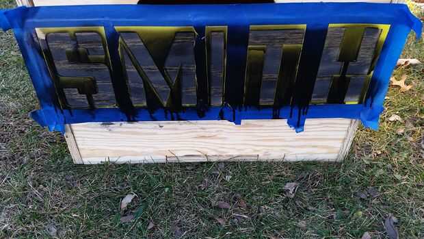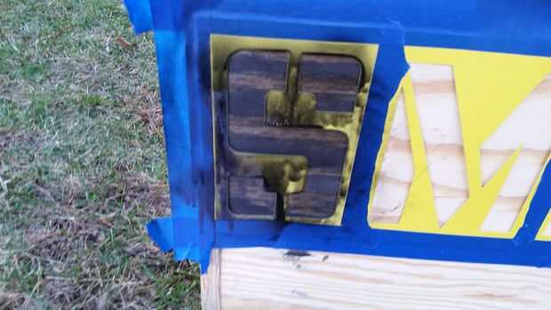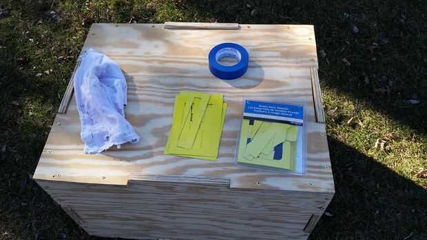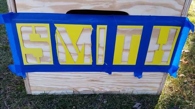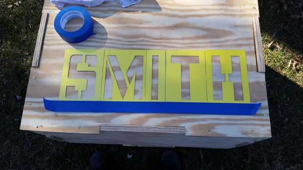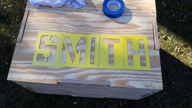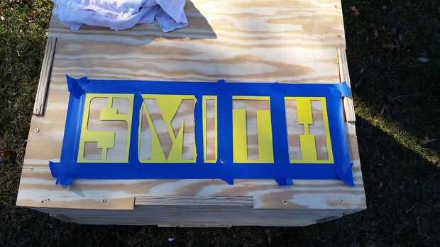 Este paso es opcional pero le da la caja de un sentido del estilo. Si usted decide pintar su cuadro, sus plantillas en primer lugar y con cinta de enmascarar las plantillas (asegurándose de tapar los agujeros entre las letras). Cuando están pintando el cuadro Asegúrese de rociar en arranques rápidos, no mojada las plantillas con pintura (si Moje las plantillas en la pintura, la pintura sangrará más allá de las plantillas y la caja va a perder su apearance limpio). Si no usas guantes como yo y termina con la mitad del bote de pintura en las manos, hay una solución rápida para sacartelo. Sólo vierta algunos espíritus de mineral sobre un trapo y la pintura se frota de.