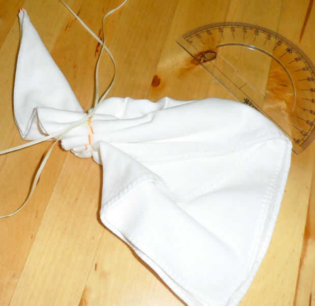 Tener un amigo sostenga sus pliegues. Coloque un pedazo de la 2 yarda de tendón artificial bajo pliegues. Corbata de nudo cuadrado a lo largo de la línea de pliegue.