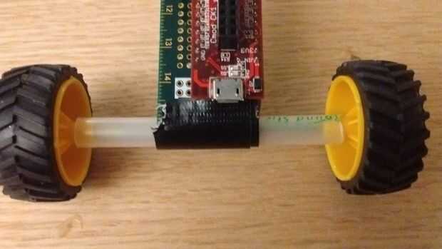 Lo que no considero es que con las ruedas colocadas en el frente (con el eje se sujeta con cinta aislante) es que cuando el piloto de una pared, luego simplemente intentaría conducir recto hasta la pared y no lo hacen porque las ruedas estaban hasta ahora hacia adelante. Gritos. Resulta una necesaria una mejor ubicación para que no subir una pared, pero también golpeó con firmeza suficiente para que el acelerómetro se desencadenó, diciendo el microcontrolador para detener los motores.