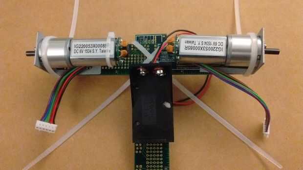 Particularmente no importa qué tipo de soporte de la batería utiliza - pasó a utilizar una batería de 9V porque proporciona suficiente potencia para ejecutar los motores, estaba dentro de rango de entrada de tensión aceptados de la Cmod chipKIT y es lo suficientemente pequeño como para vivir en la parte inferior del corredor sin fricción a lo largo de la tierra o ser demasiado grande o pesado para el corredor.