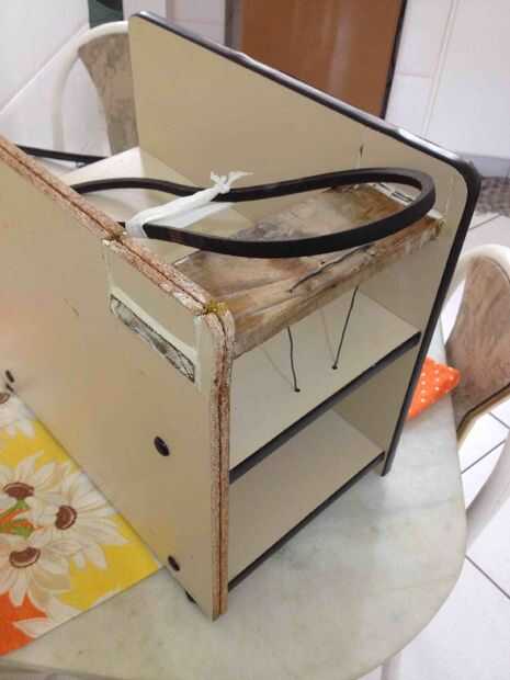 Las herramientas que necesitarás:1 pistola de pegamento caliente2. cualquier tipo de cuchillo3. hack Saw4. el alambreLos componentes que necesitará:1. una caja fuerte (preferentemente de plástico)2. un fondo amplio para guardar la caja de caída (util