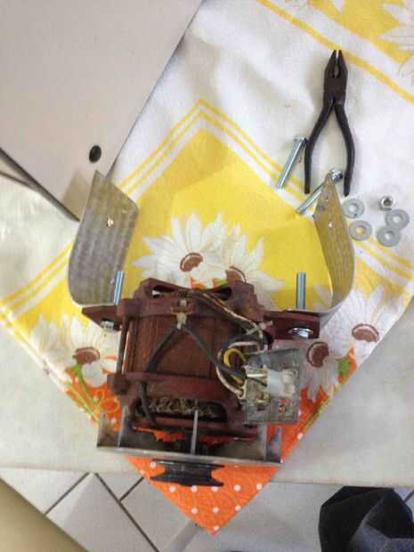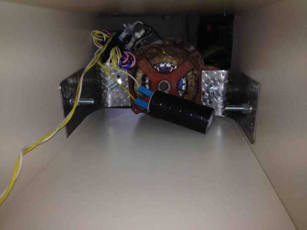 El paso siguiente fue comprar un cinturón de "VA" en la longitud necesaria y montar el motor usando una placa de metal para fijar el motor en la madera.