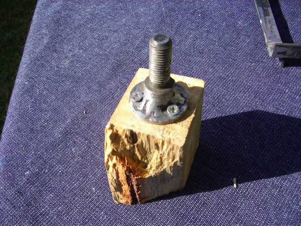 Por el momento, para el trabajo en la madera, maneja con una pequeña pieza hecha con un tornillo de acero que tiene un par de arandelas de espesor soldada a la cabeza, con tres agujeros para los tornillos que vienen en la parte y sujétela firmemente.