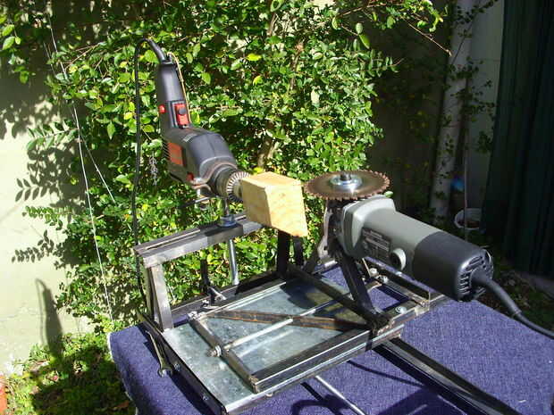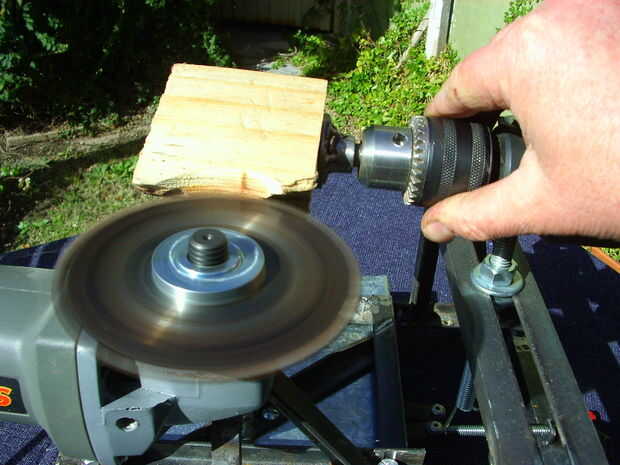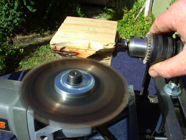 La amoladora de disco está en la posición horizontal porque me resulta más cómodo. Como no tengo ningún diseño en mente en particular, puede llegar a ser "lo que sale." Es para pruebas solamente.