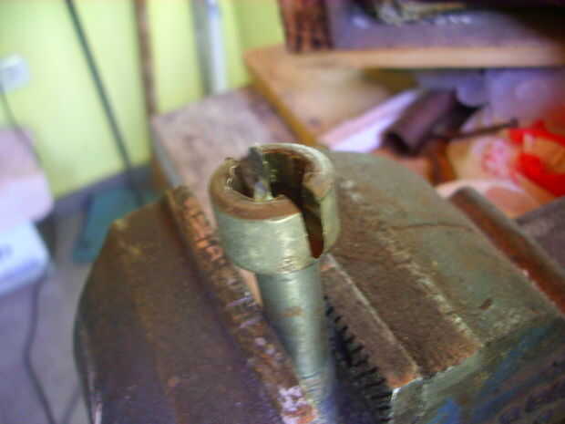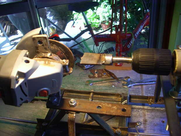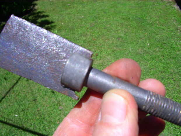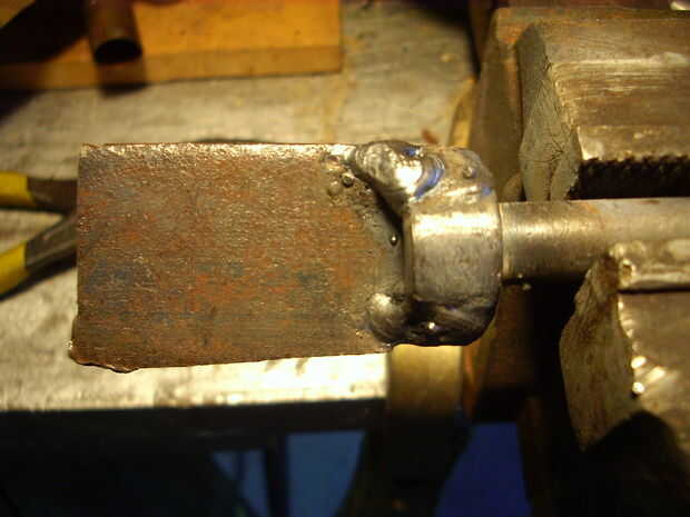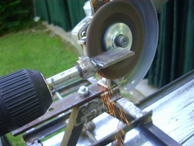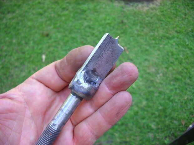 Hace unos días necesitaba una mordida de madera, una medida que no se dio. Así que tuve que hacerlo. Entre mis cosas encontré un perno de acero y un pedazo de hierro de 1/8 de pulgada. Con la amoladora de mano hice una ranura en la cabeza del tornillo, donde puse y soldar la pieza de hierro, y luego usé mi "torno del pobre" para darle el tamaño deseado y la forma. La picadura hizo poco trabajo porque no es acero, el filo es desafilar con facilidad, pero tan pronto como sea posible se cemento con ferrocianuro potásico.