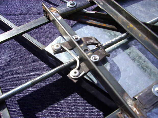 También tiene un mecanismo de tornillo-tuerca que cierra y abre con palancas, para el acoplamiento y desacoplamiento de la segunda barra roscada. También se fija a la base con garras de acero
