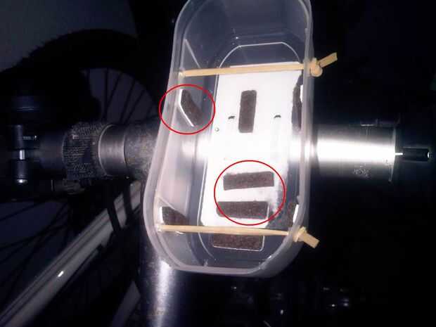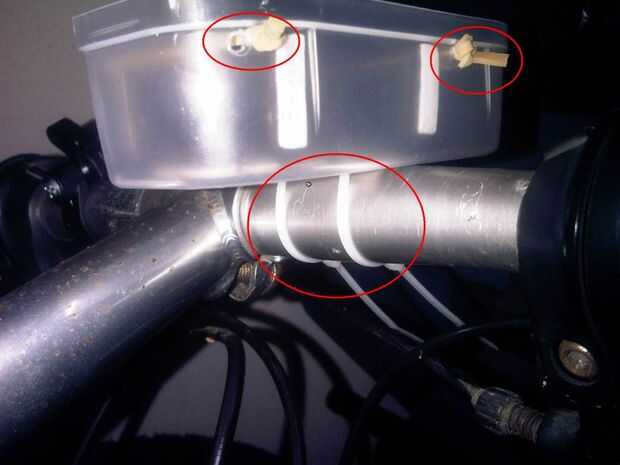 3 - (Foto #3) utilizar las abrazaderas de plástico para asegurar la caja en el manillar (o tallo).