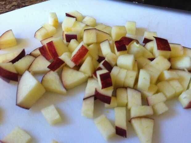 En primer lugar, corta la manzana en cubos mordedura pequeño tamaño.