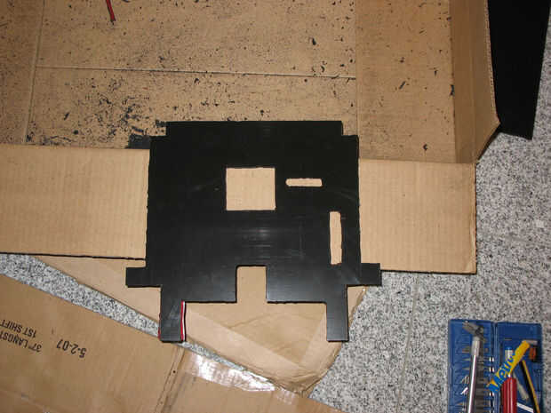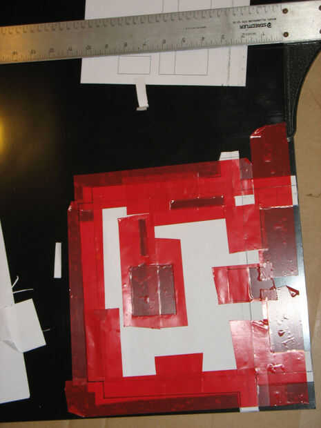 Alinear las piezas y la cinta o pegamento a la hoja de plástico abs. Sugiero utilizar algún pegamento de aerosol de tela (tal vez los utiliza para adherir el fieltro para mesa de billar).