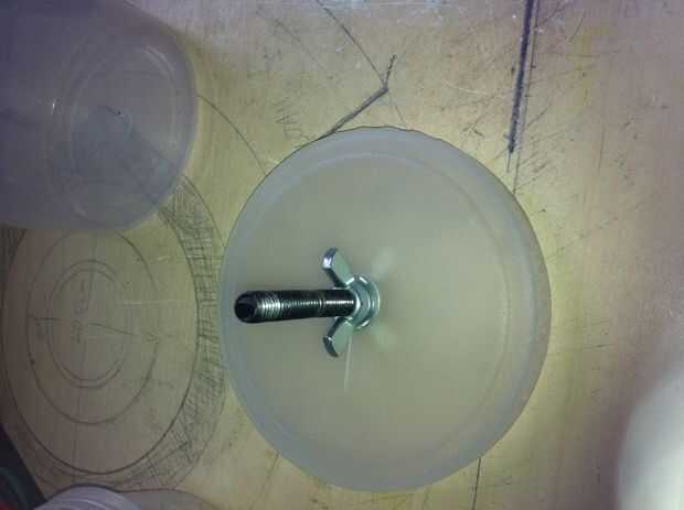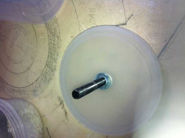 poner una arandela en el tornillo y empuje a través de la tapa sea el eje del perno en el exterior.