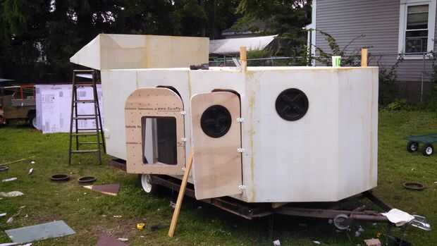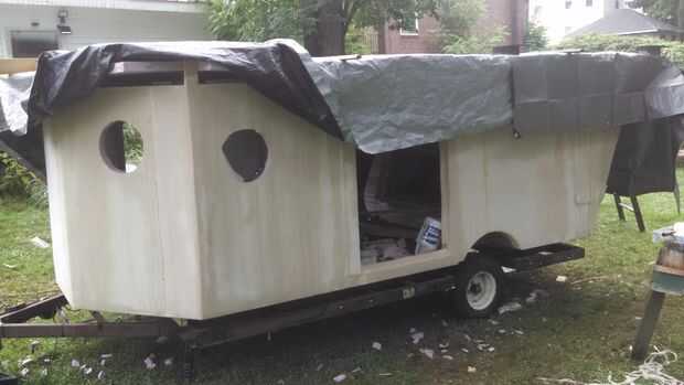 Empecé con un viejo pop up camper que arrastró Inicio gratis. Realmente se sentó durante algunos años hasta primavera de 2015 cuando rasgó todo hasta el marco, los pedacitos de madera se quemó, había destrozado al tejido de ratón come y había desechado el metal. Tengo alrededor de $30 en el desecho de la yarda para el aluminio y el acero, pero aún mejor, he encontrado un campo de trabajo de la estufa, ventilador alimentado por batería, colchones de aire, una mesa, una estufa de trabajo, fregadero y algunas otras cosas que serán muy útil en la construcción nuevas.